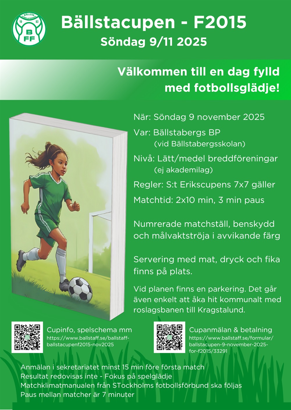 Bällsta FF har glädjen att bjuda in till en härlig fotbollsdag för flickor födda 2015 – en cup där glädje, gemenskap och utveckling står i centrum!